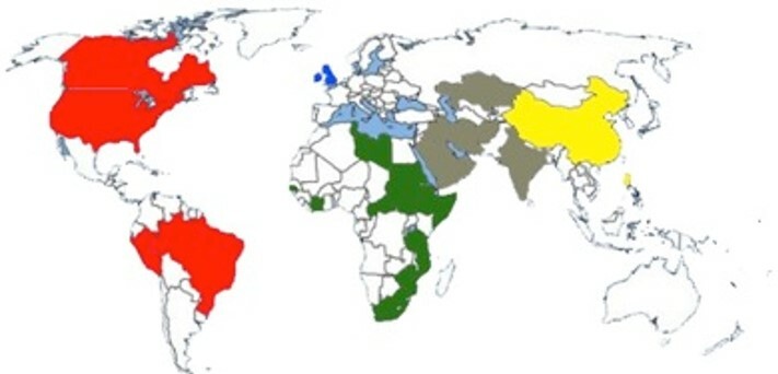 USA, UK, Canada, Japan, Russia, China, France, Germany, Netherlands, Denmark, Spain, Italy, Switzerland, Belgium, Austria, Hungary, Luxembourg, Portugal, Poland, Czech Republic, Slovenia, Greece, Bosnia, Serbia, Turkey, Belarus, UAE, KSA, Qatar, Bahrain, Oman, Egypt, Lebanon, Morocco, Mauritania, Iraq, Syria, Jordan, S.Korea, India, Malaysia, Singapore, Thailand, Vietnam, Indonesia, Philippine, Ghana, Senegal, Guinea, Ivory Coast, Sierra Leone, Benin, Togo, Tanzania, Kenya, Uganda, Rwanda, Ethiopia, Eritrea, Sudan, South Sudan, Somali.